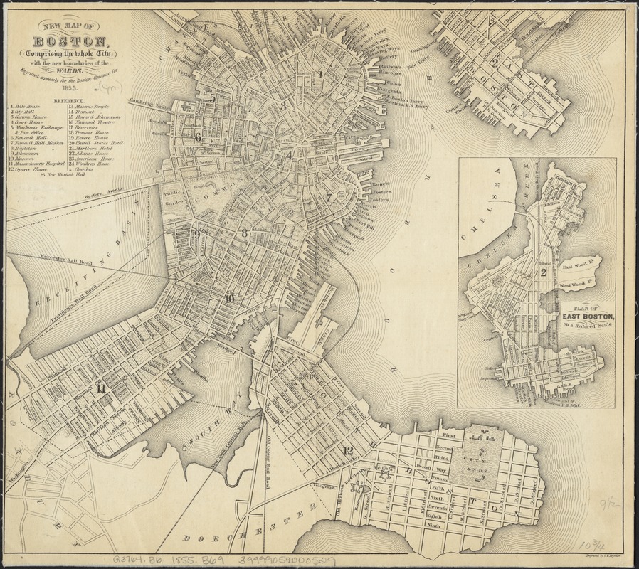 Courtesy of Bpl/Leventhal Map Center Boynton, George. New map of Boston, comprising the whole city, with the new boundaries of the wards. 1858 The map is today part of the Leventhal Map Collection.