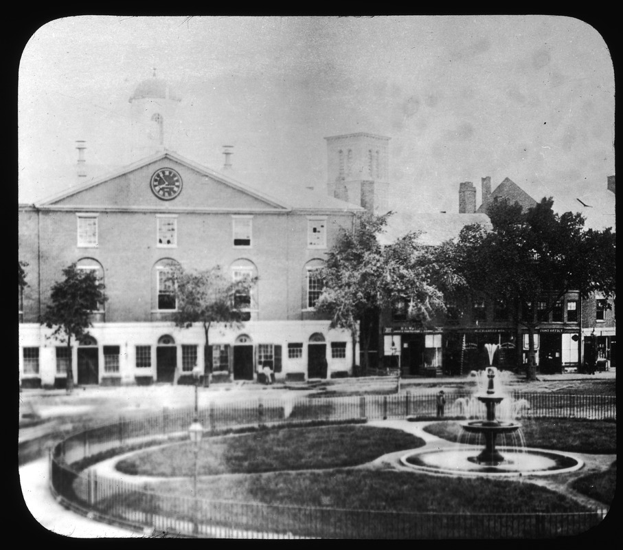 Originally the Market House, it is designed in the Greek Classical style and located on the former site of Robbins Tavern in City Square. The building is demolished in 1868 and replaced in 1870.*