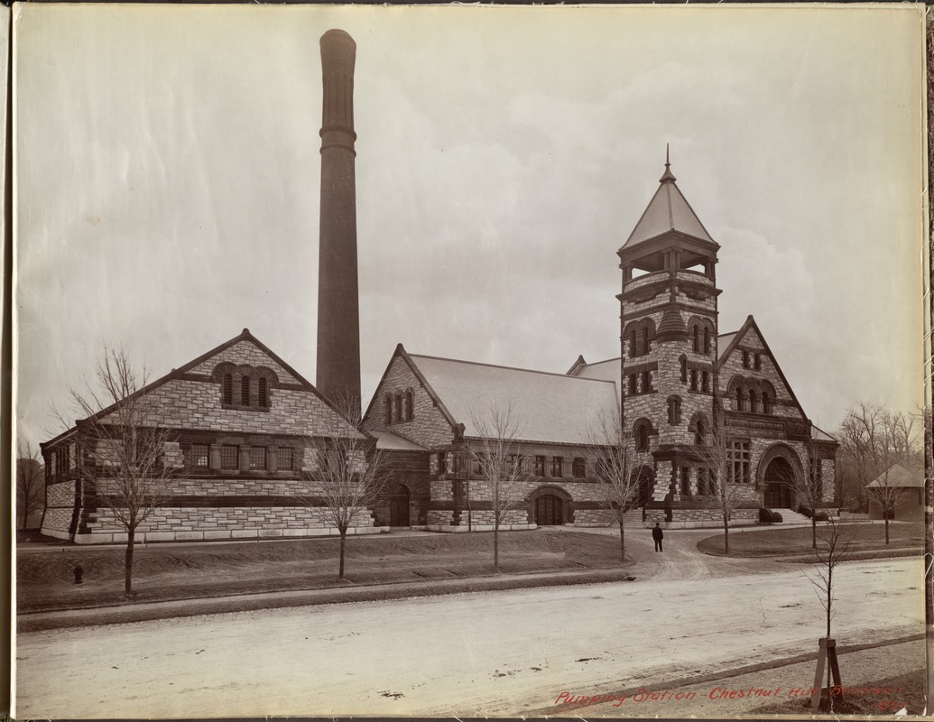 Architect: Arthur Vinal. Designed in the Richardsonian Romanesque Revival style (with the likeness of the faces of the architect and his wife on the exterior), it is located at 2450 Beacon Street. Part of the Chestnut Hill Waterworks complex, it replaces the Roxbury pumping station and allows water to be pumped over the high ridge of Boston’s western suburbs. An addition by Edmund March Wheelwright is built in 1897 and a Low Service Station is built in 1898.* The facility ceases operation in 1974 and the pipes are disconnected in 2006. The building reopens as museum in 2011.*