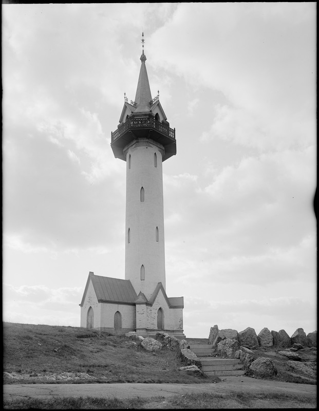 Architect: Nathaniel Bradlee. Also known as the Roxbury Standpipe, it is designed in the Gothic Revival style, built by the Boston Water Works, and located on the former site of the Roxbury High Fort on today’s Fort Avenue. The standpipe goes into service in 1870, and provides high water service first for Roxbury Highlands, then for Beacon Hill, Dorchester Heights, and West Roxbury, and continues in use until 1887.* The surrounding park is redesigned by the Olmsted Brothers between 1895 and 1916. Interior stairs are added to the standpipe, and it is converted to an observation tower in 1906. A balcony is added, and the tower opens to the public in 1917. After the balcony collapses in the 1960s or 1970s, the building is generally closed to the public.