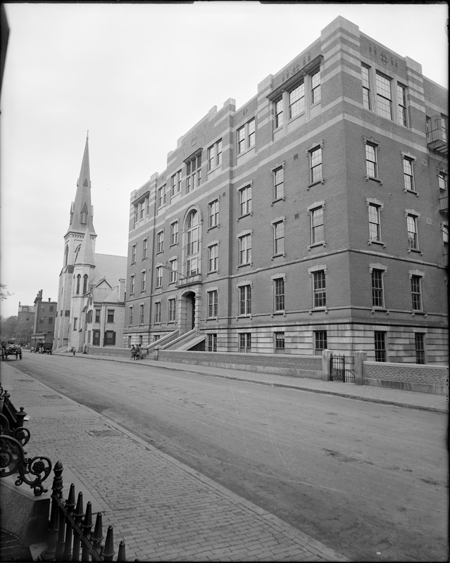 (Sept.) It is located at today’s 85 West Newton Street. Dedicated on April 19, 1871, the limestone building is the largest school building in New England and is soon shared with Girls Latin School. The school closes in 1954. The building is demolished in 1960 and becomes a playground in 1962.*
