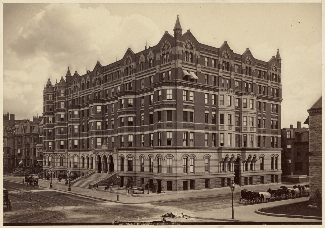 Architect: Peabody & Stearns. It is located at 520 Boylston Street. The building is enlarged in 1876. Guests include President Rutherford Hayes and Henry James. The hotel is subsequently home to a series of jazz clubs, including the Egyptian Room in the 1930s and 1940s. The hotel closes and the building is torn down in 1957.