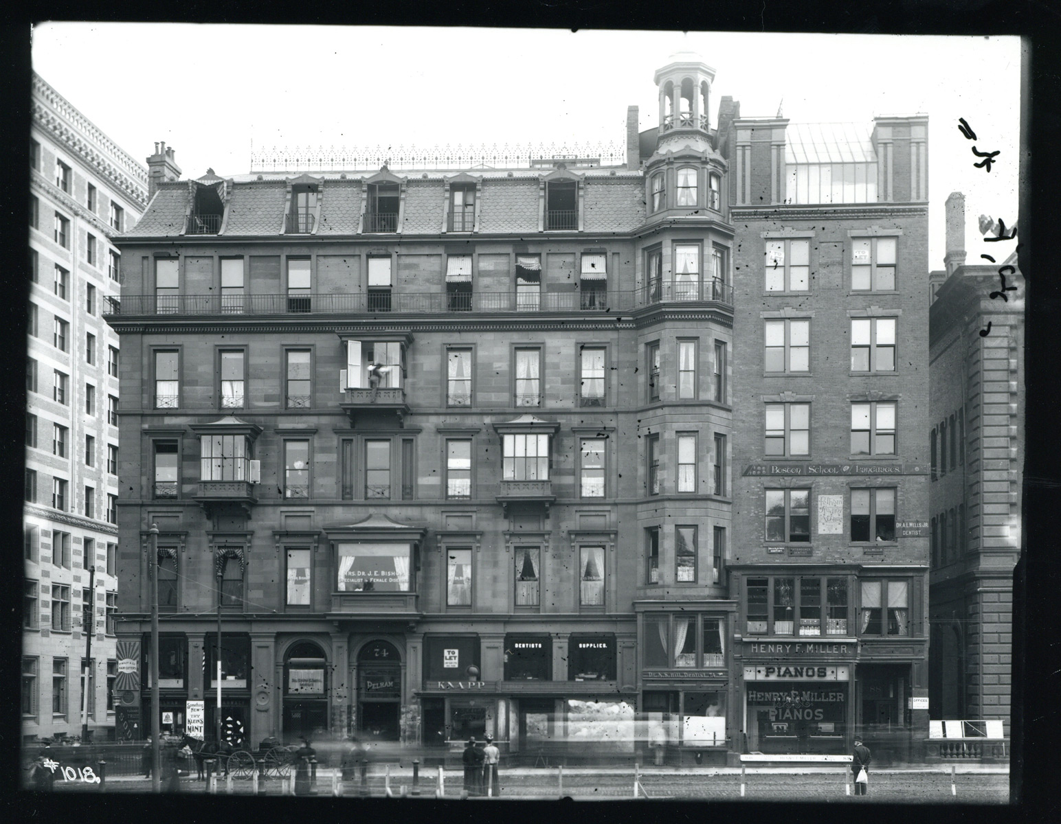 Architect: Alfred Stone. [Arthur Gilman.] Designed in the French Second Empire style, it is located at the corner of Tremont Street and Boylston Street at today’s 195 Tremont Street. The first apartment house in the U.S. (or second, after one in New Orleans), it introduces the “French flat,” a kind of residential hotel, in which separate apartment suites on a single floor share a central kitchen in the basement. The building is moved in 1869.*