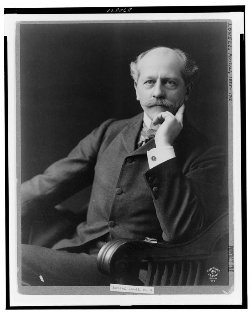 The son Augustus and Katherine (Bigelow) Lowell, Percival Lowell grows up at 171 Commonwealth Avenue and in Brookline, graduates from Harvard College, and after traveling in the Far East, becomes interested in astronomy and builds an observatory in Flagstaff, Arizona in 1894. Based on his observations, he becomes convinced of the existence of the planet Mars, marries Constance Savage Keith in 1908, suggests the existence of a new planet in 1914.* Lowell dies in Flagstaff on November 12, 1916, and is buried there on what has come to be called Mars Hill.