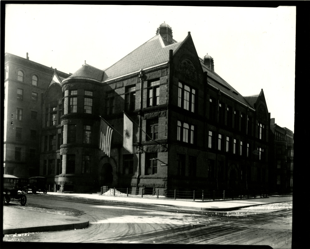 [1879] Architect: H.H. Richardson. Originally the Massachusetts Normal Art School, then Massachusetts College of Art, It is located on the corner of Newbury Street and Exeter Street near today’s 200 Newbury Street. The building is demolished in 1969.