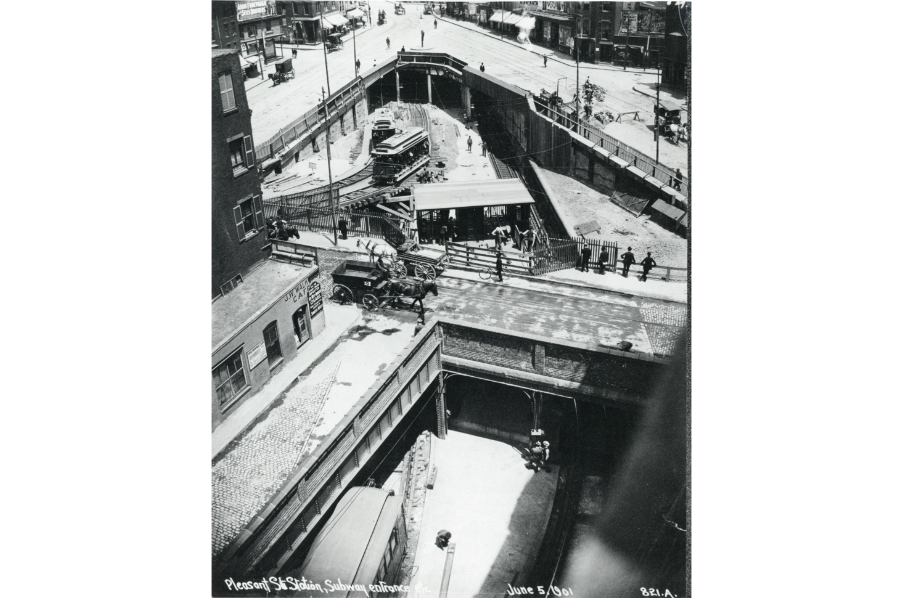 The open-air station is located on what was then Pleasant Street. It continues to operate until November 29, 1908.