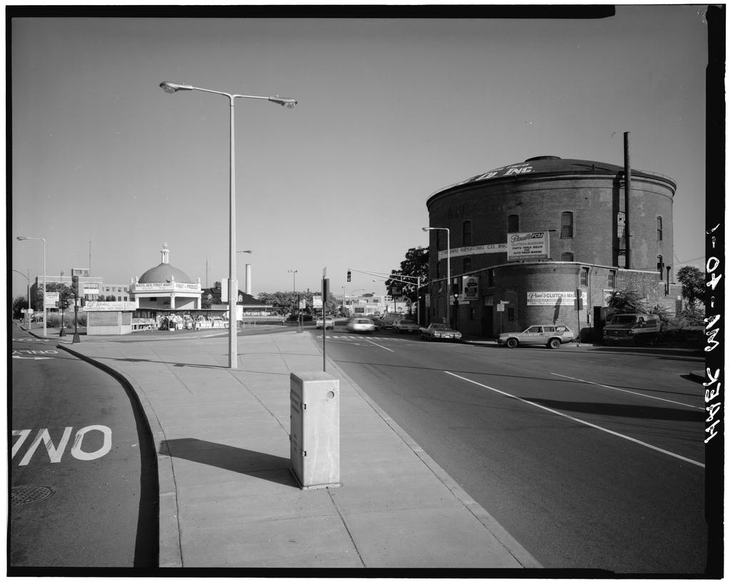 [1873-BGL] Also known as a “gasometer,” the circular brick building is located at 891 Massachusetts Avenue. The surrounding plant is demolished in 1906 and the gasometer building has windows installed and is used as a movie theater and exhibition space in the 1920s, a light manufacturing plant in the 1930s and a warehouse in the 1980s. It is converted to a hotel in 2001.*