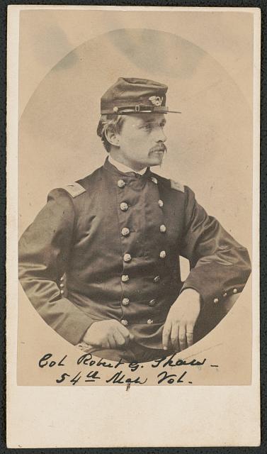 The son of Robert and Sarah (Sturgis), Robert Gould Shaw Jr. grows up at 34 1/2 Beacon Street, graduates from Harvard College, works briefly in New York City, and enlists in the Union Army as a private in the New York National Guards in 1860. After accepting command of the Massachusetts Fifty-Fourth Regiment in early 1863, he marries Anne Haggerty on May 2, 1863, but is killed 10 weeks later, leading the regiment in an assault on Fort Wagner in South Carolina on July 18, 1863. Shaw is buried there in an unmarked graves with other members of the regiment killed in the battle.