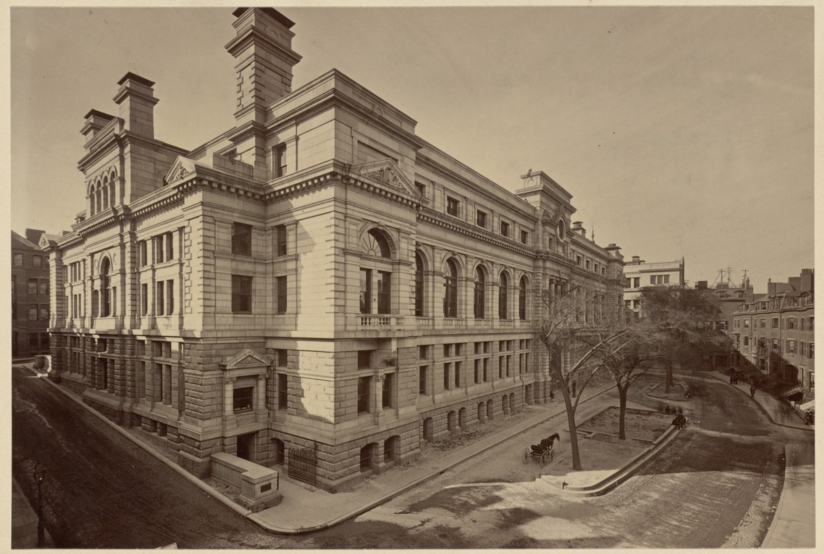 Architect: George Clough. Originally the Suffolk County Court House (fifth) and later known as the Old Suffolk Court House, it is designed in the French Second Empire style and located at 1 Pemberton Square. A two-story mansard roof is added in 1910. A new court house (sixth) is built next to it in 1939.* The original building is renamed the John Adams Court House in 2002, renovated by CBT Architects, and reopens in 2005.
