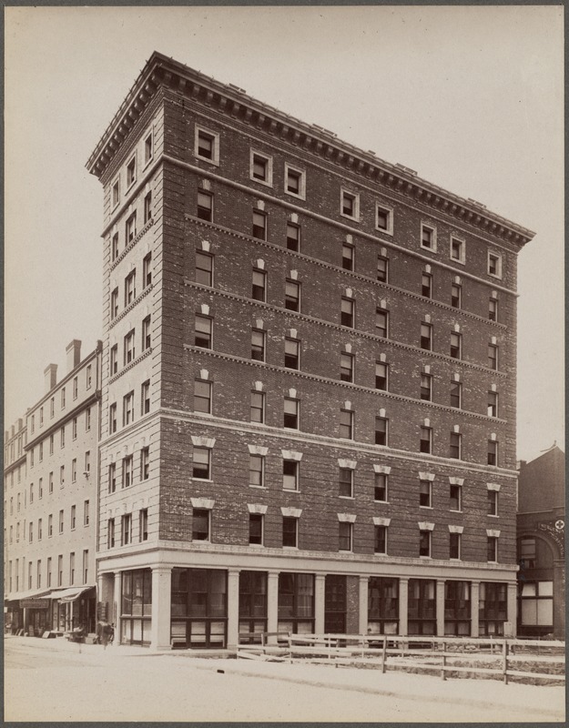It is located at today’s 158 Beach Street. Guests include Daniel Webster and Charles Dickens. Enlarged twice, it is the largest hotel in the city with 500 rooms by 1859. An addition by Winslow & Wetherell is built in 1894. The hotel closes on August 16, 1929, and is demolished in 1946.